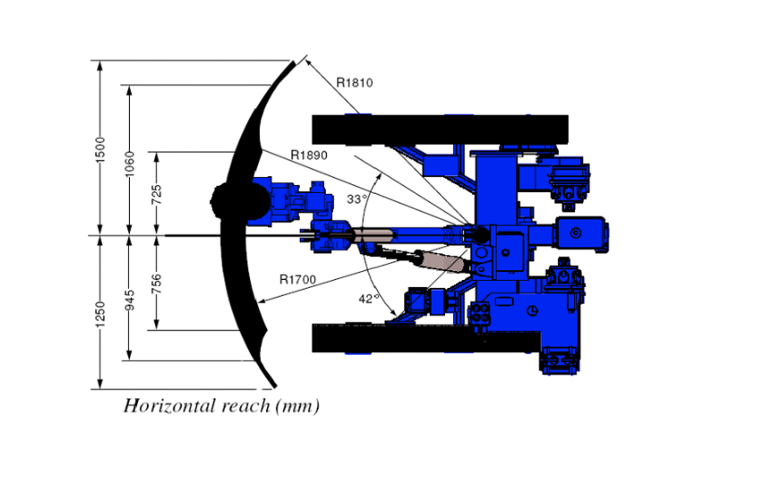 The KC-115 is a one-man operated machine. Its tramming controls are located beside the left track and it can tram at 3.2 km/h (2 mph), thanks to the two independent