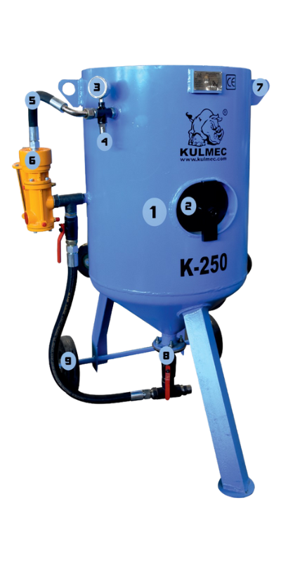 Fabricated from heavy gauge steel this blast pot is of the highest quality available.